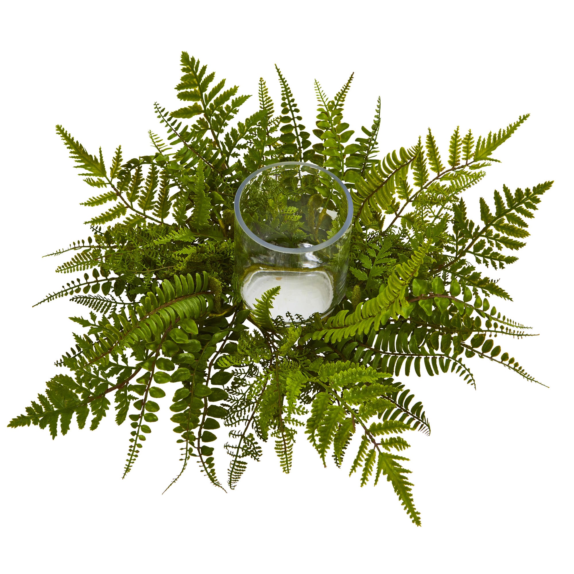 6.5" x 21" Artificial Mixed Fern Arrangement w/Candle Holder - Low Maintenance, Life-Like & Vibrant Silk Flowers For Busy People.
