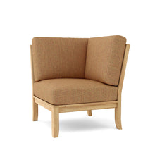 Made of premium grade unfinished teak, the set arrives with two Riviera Armchairs, a Right, Left and Center modular that sits up to three, and the Riviera Rectangular Coffee table. Also includes 6inch thick cushions made from All-Weather Sunbrella Fabrics with choice of color and pattern option.