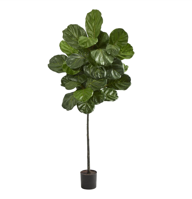 Create a natural sense of greenery in your home or office this vibrant artificial tree designed with oversized fiddle leaf fig leaves in glossy, verdant hues that look incredibly lifelike, sitting atop slender, stabilized steams. A year-round (faux) favorite amongst interior decorators, this artificial fiddle leaf fig tree stands 5.5' high from an accompanying nursery planter and would easily provide year-round freshness to any space it inhabits.